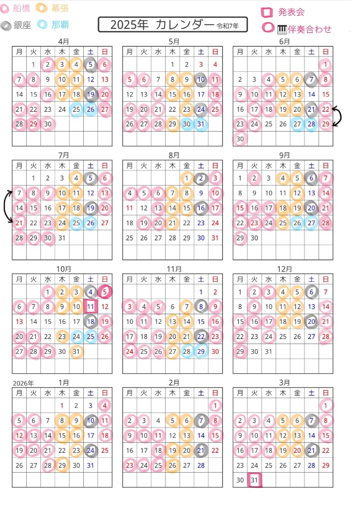 オンラインは船橋教室のピンクの⚪︎と一緒です。